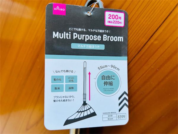 カーペットのホコリの掃き掃除もお風呂の髪の毛掃除も…窓の拭き掃除も⁉「マルチ万能ほうき」をお試し!【ダイソー】