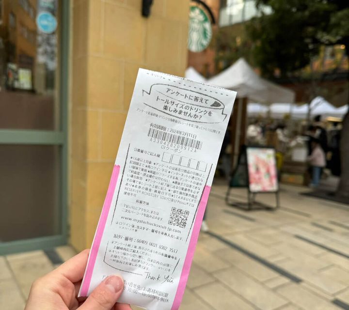 「CVレシート」とは、アンケートに答えるとトールサイズのドリンクと交換できる本当にレアなレシート! 有料カスタマイズも無料でできちゃいます♪ 対象年齢は18歳以上。クーポンの引換期限は10日間。以前は有効期限が30日間でしたが、最近変更になりました。もしこのレシートに出合えたら、お早めに使ってみてくださいっ!