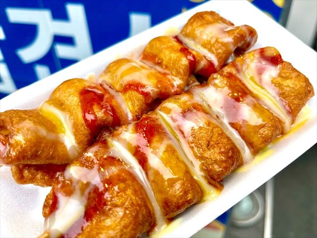 ジューシーな韓国おでんとまろやかなチーズは最高! 購入後、その場で食べるものとは、また違ったおいしさを味わうことができます。