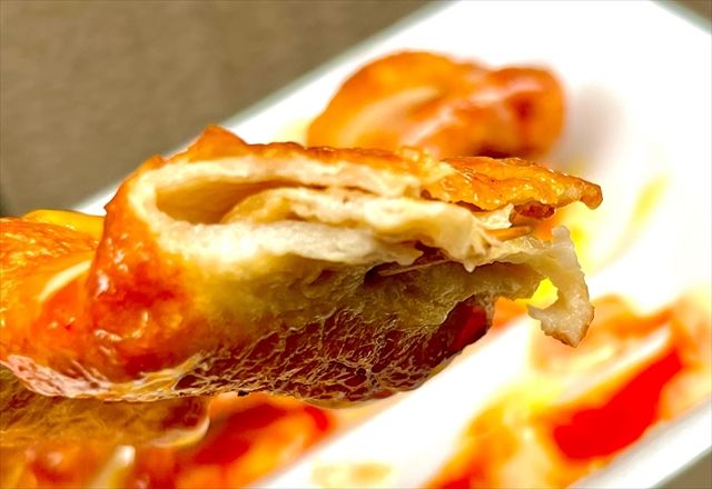 魚介の風味にジューシーさが加わって、ソースとの相性も抜群です。表面はカリッと、中は柔らかく、二度食感を楽しむことができます。