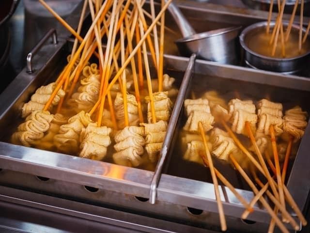 発祥は韓国・釜山で、屋台の名物料理として地元の人だけでなく、観光客に人気のグルメです。魚介のすり身で作った練り物を串で刺し、昆布や煮干しなどの出汁で煮込んでいます。
