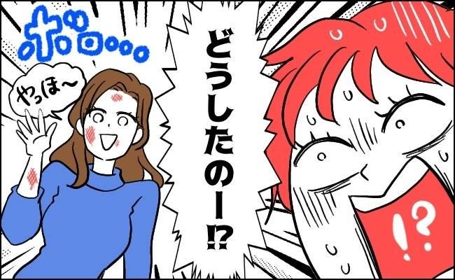 その姿を見て思わず「え、何があったの! 大丈夫?」と言うと「ひどいでしょう? 大丈夫、大丈夫」と言っているもののそうは見えません。すると、続けざまに「見えないところもアザだらけで全身痛いのよー」と苦笑い。あまりにも痛々しい姿に、私は言葉を失ってしまいました。