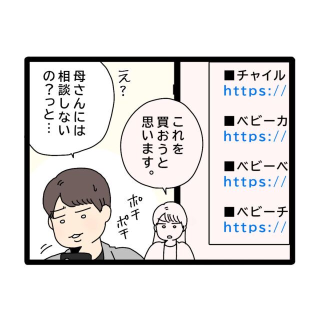 3. [39]まだ言う?ベビー用品を選んだ妻に夫「母さんに相談は?」夫のお金は義母管理|ママ広場マンガ