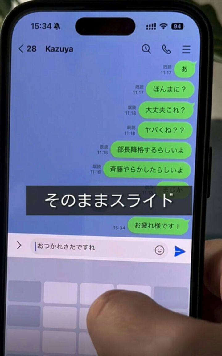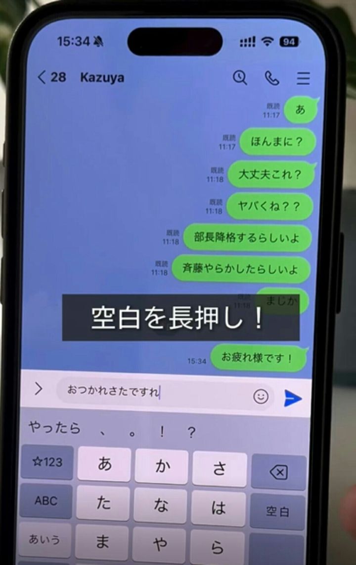 また、文字を打った後に長押しし、すぐにスライドさせることでも対応できます。