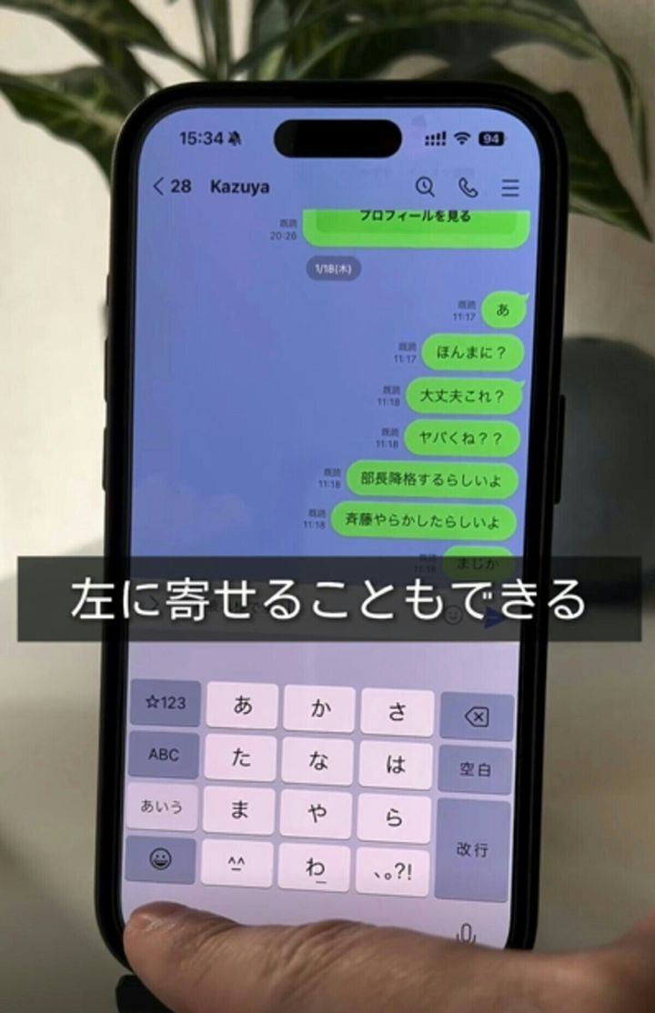 また、◀マークのあるキーボードのマークを選択すると、キーボードを左側に寄せることができます。利き手によって、選んでみてくださいね。