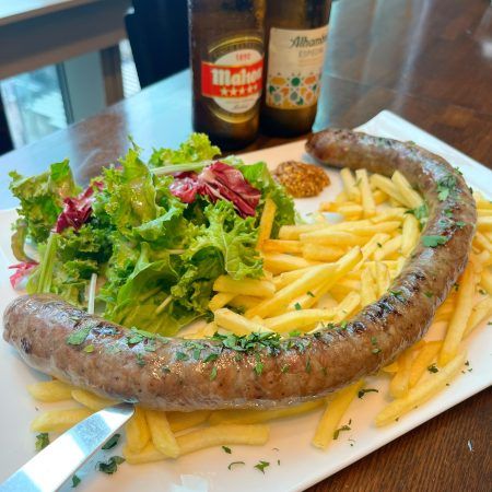 大きさはもちろんですが、自家製なので肉肉しくて、ジューシーで食べ応えがあります。ハーブの香りもけっこうきいていました。これはビールが飲みたくなる味!