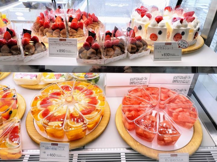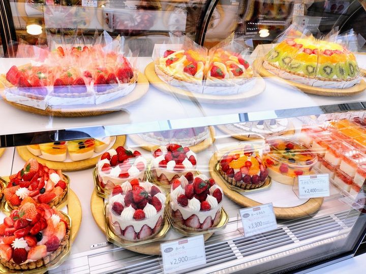 もう見ているだけでうっとりしてしまう美しいケーキたち。 フルーツピークスでは旬のフルーツを味わってもらうために、その時期にもっとも美味しい産地、品種を見極めてケーキやタルトを用意しています。
