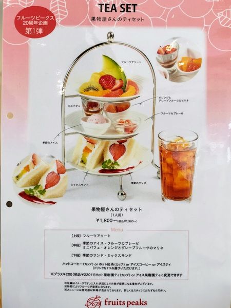 季節のパフェやタルトにも惹かれましたが、今回はフルーツピークス20周年記念メニューである「果物屋さんのティーセット」(1,980円)をオーダーしてみました。