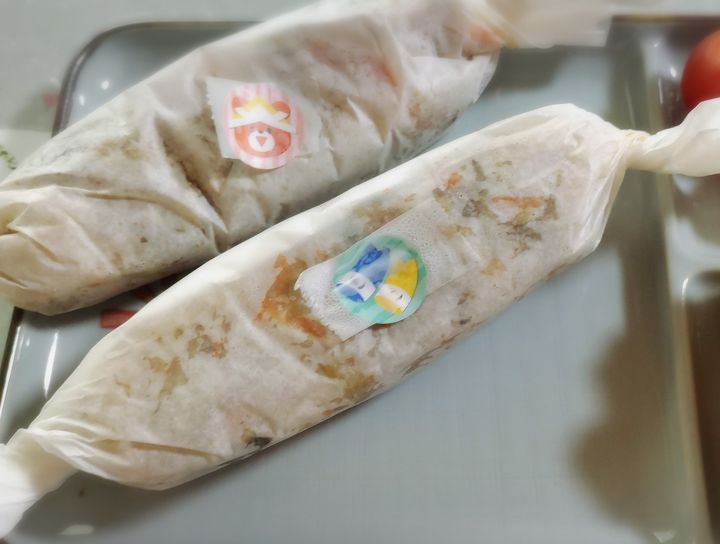 普通にお茶碗によそっても良いですが、今回はちまきっぽくしたかったので、クッキングペーパーで包み、シールを貼ってみました。