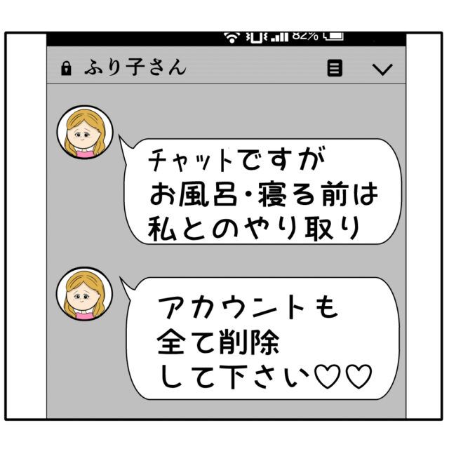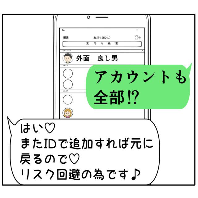 ふり子さんは、スマホを見られても連絡していることがバレないための方法を良し男さんに伝えます。