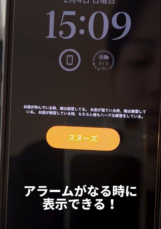 すると、ロック画面でアラームが設定されていることが一目瞭然です。アラームを掛けたか自信がないときも、この設定をしておけばすぐにわかりますね。