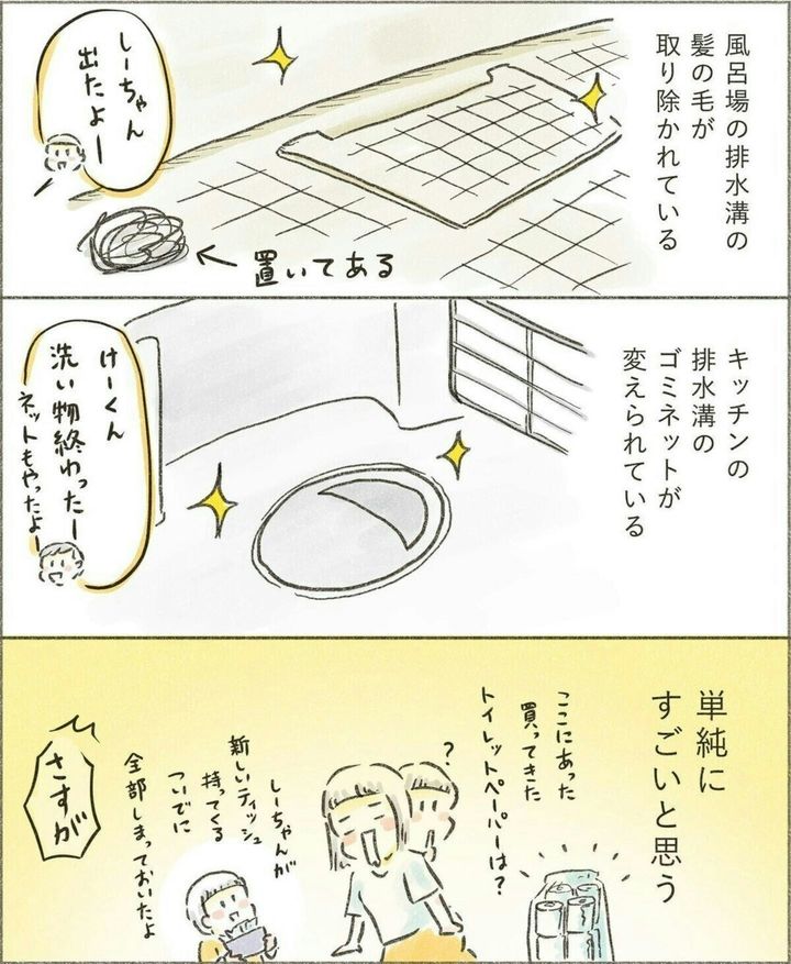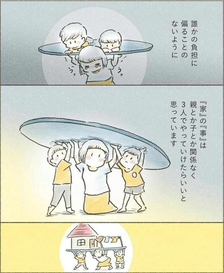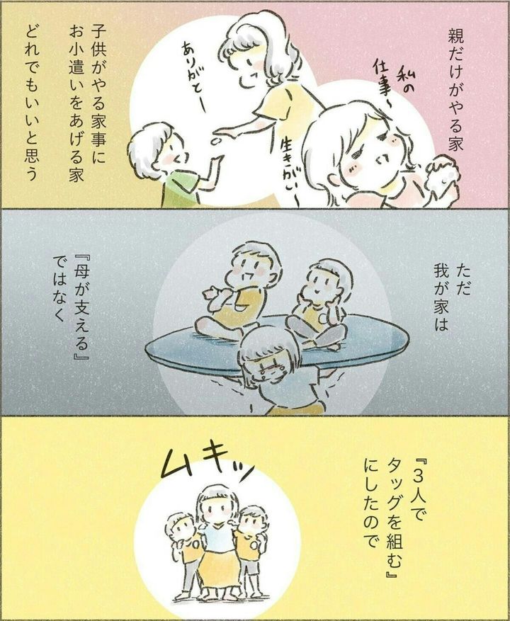 せせらぎさんは「誰か1人が家のことをするのではなく、家族で家のことをしよう」という考えを子どもたちに伝えます。どんなことも分担をすれば早く終わりますが、1人でやると大変です。その考えが家族に浸透すれば、とても素晴らしいことですよね。