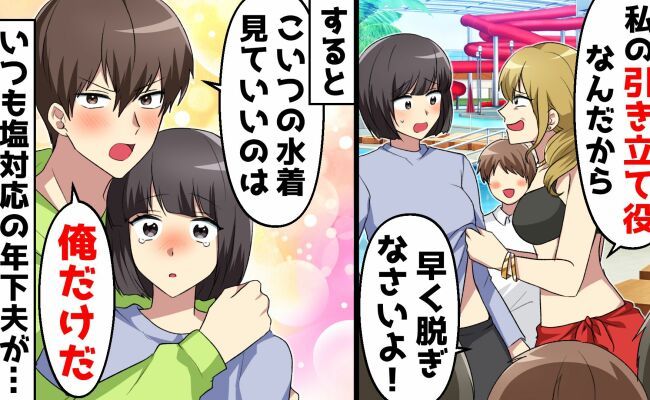 「こいつの水着姿を見ていいのは俺だけだ!」塩対応の年下夫が意地悪ママ友から妻を守り⇒衝撃展開に!