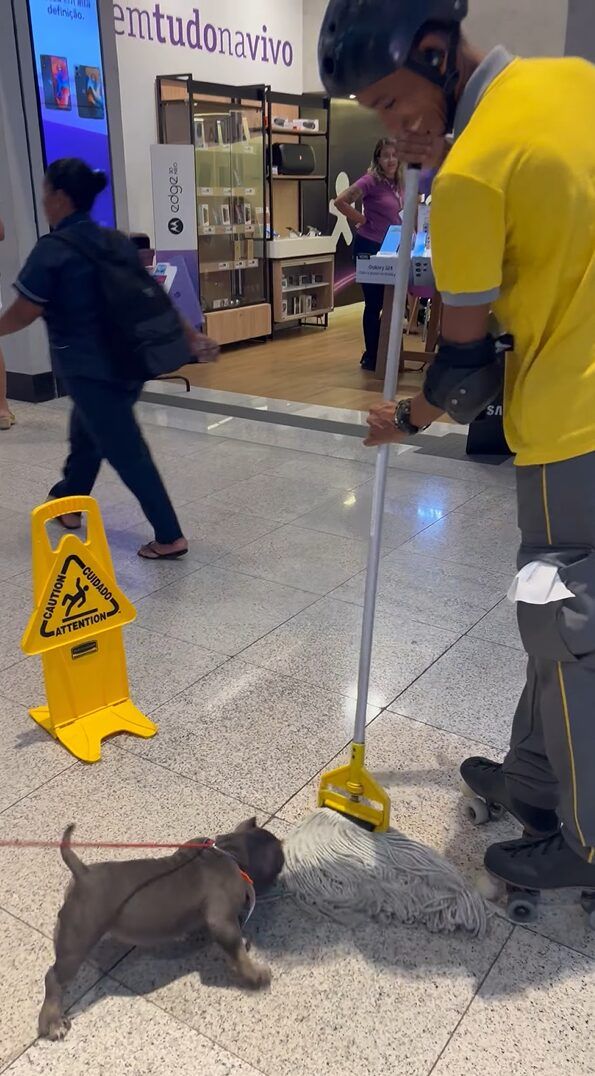 動画が撮影されたのは、ブラジルのショッピングモール。 撮影者さんは、子犬と一緒にお買い物に来ていました。