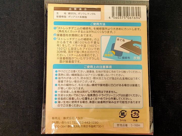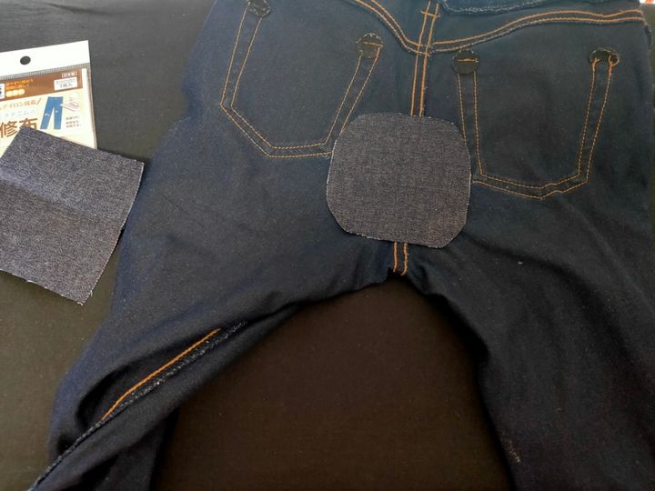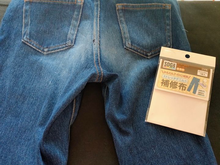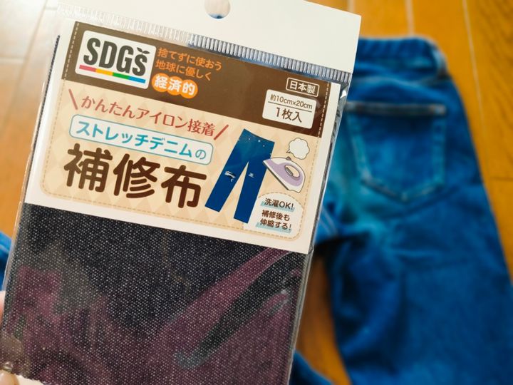 セリアで見つけた「ストレッチデニムの補修布」で補修してみました。