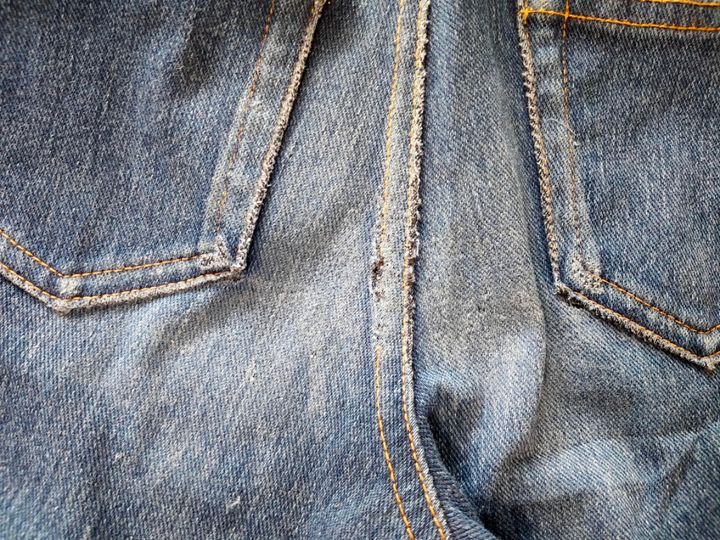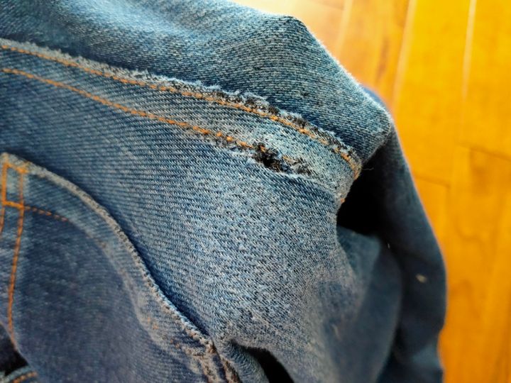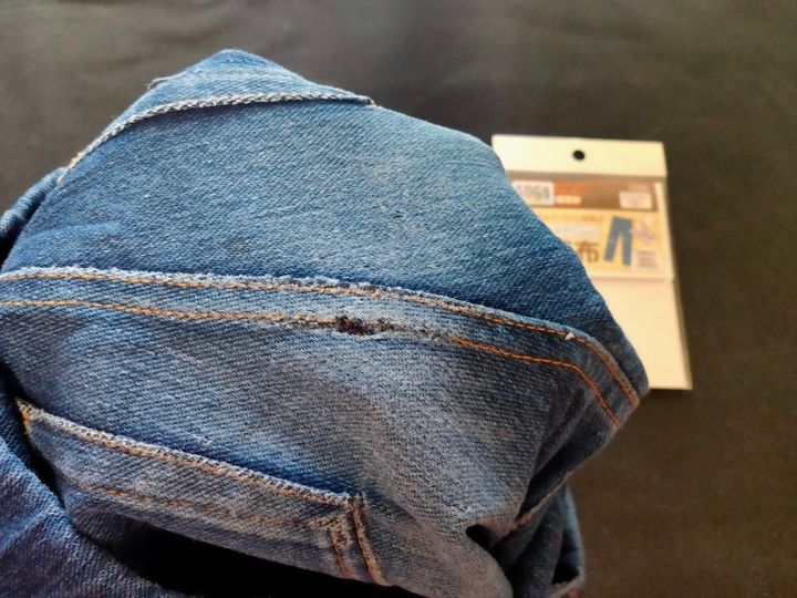 おしり部分に穴のあいた子どものデニムパンツを補修します。