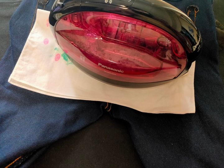 使用方法のとおり、綿のあて布して中温設定のアイロンで接着。