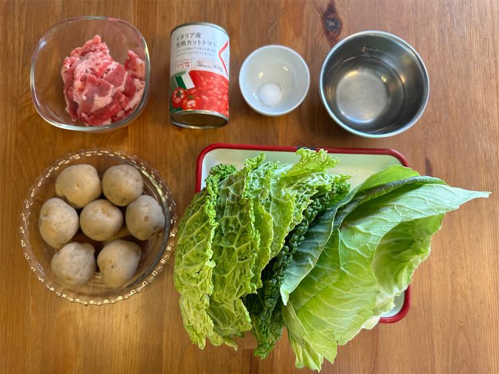 ※キャベツは、サボイキャベツという品種と普通のものを両方使いました。もちろん、全部普通のキャベツで作っても可。