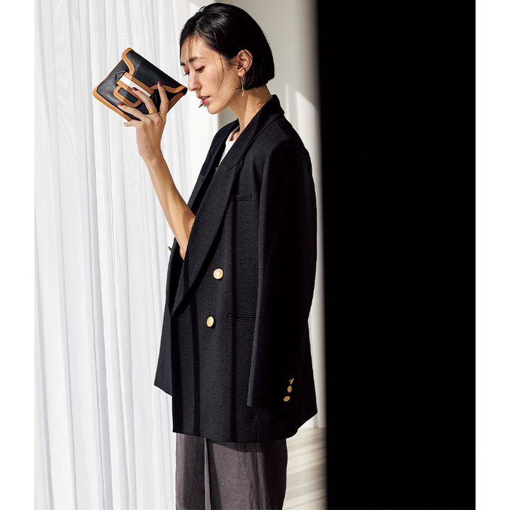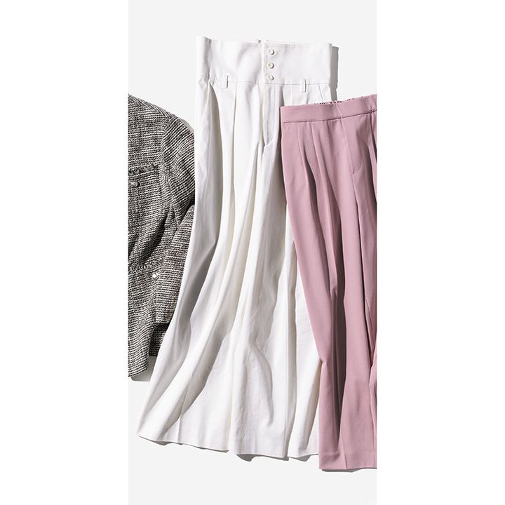 大人でも取り入れやすいトレンド感と高見え力に定評あるブランド。 ダブルジャケット¥15,400(アパートバイローリーズ/アダストリア)タンクトップ¥18,700(ブリル/ブリル新宿)ビスチェ¥31,900ワイドパンツ¥46,200(ともにベイジ,/オンワード樫山 お客様相談室)ピアス¥148,500リング[太]¥346,500[細]¥126,500~(すべてマリハ)バッグ¥66,000(ピエール アルディ/ピエール アルディ 東京)