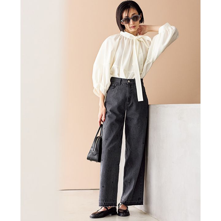 M to R [ムウ ト アール] 甘辛両派に刺さる デニム×ビジューの旬パンツ