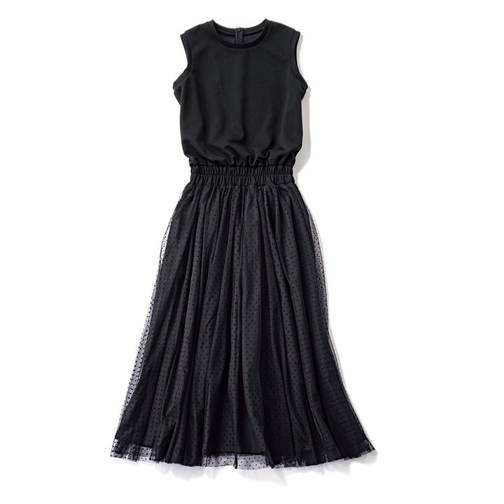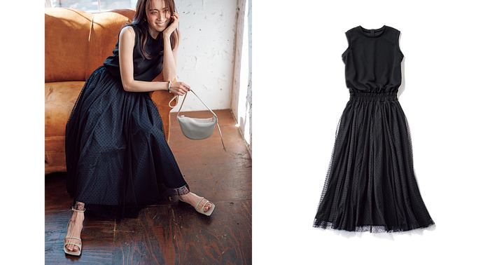 気持ちがいい季節が過ぎると一気に夏へ。そろそろ夏の暑さも視野に入れたオシャレを考えたいときですね。そこで今回は、カットソー仕立てにして着映え力抜群の黒ワンピをご紹介。チュールのシアー感が黒でも涼しげなムードを演出してくれます。