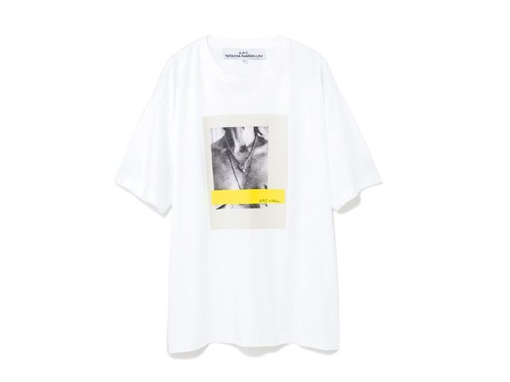 『クロエ』のクリエイティブ・ディレクターも務めたナターシャ・ラムゼイ・レヴィとのコラボアイテム。ロゴにも注目を。Tシャツ¥30,800(A.P.C. NATACHA RAMSAY‐LEVI/A.P.C. CUSTOMER SERVICE TEL:0120・500・990)