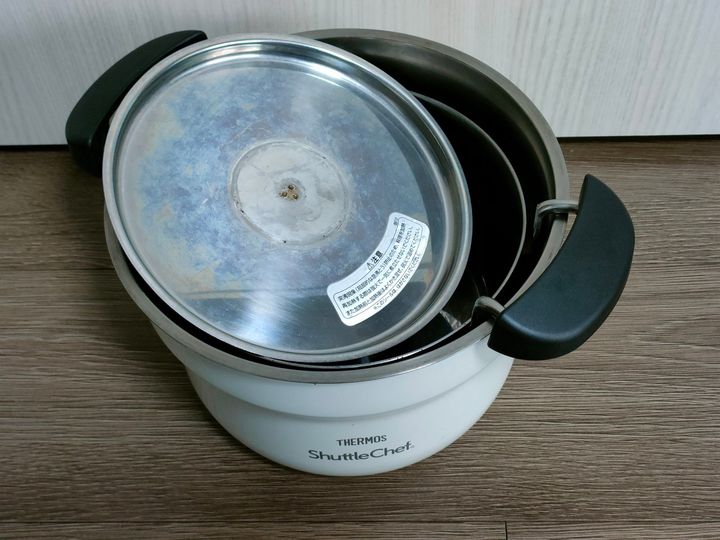 私は新婚以来、写真のシャトルシェフを愛用しています。愛用しすぎて取っ手が取れても使い続けています。この鍋は外の器が真空容器になっているため、一般的な鍋より長く、中の小さな鍋の温かさを保つことができます。