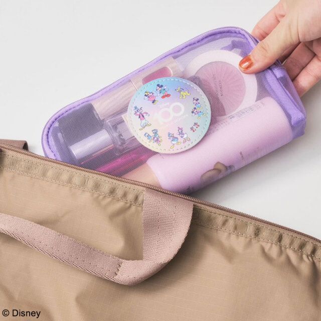 一つ目は、旅に便利な吊るせるポーチ。ハッピーなディズニーデザインで、旅がより楽しくなりそうなだけでなく、機能性も抜群です。
