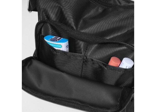 真ん中のポーチは取り外し可能。旅行中持ち歩きたいアイテムを収納し、おでかけバッグにささっと入れて、持ち歩けます。
