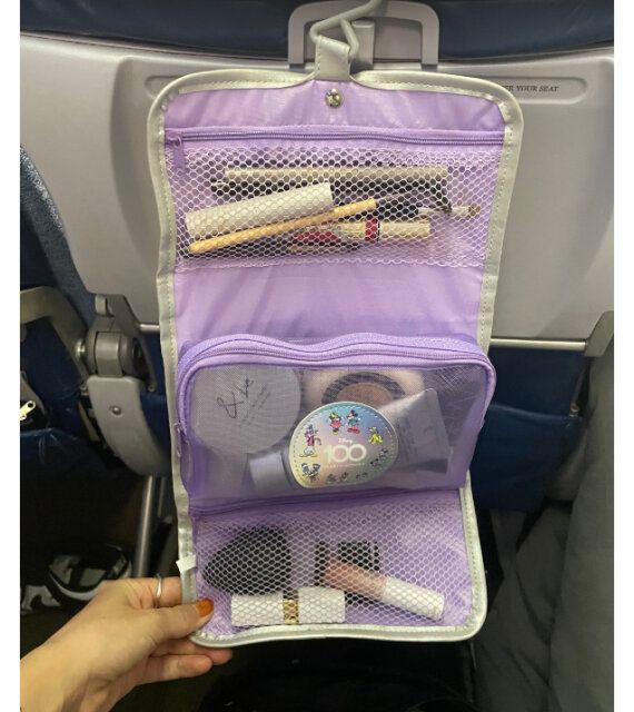 海外旅行にいく際に、飛行機の座席フックに掛けて使うことが出来ました。スキンケアや簡単なメイク直しに大活躍でした!
