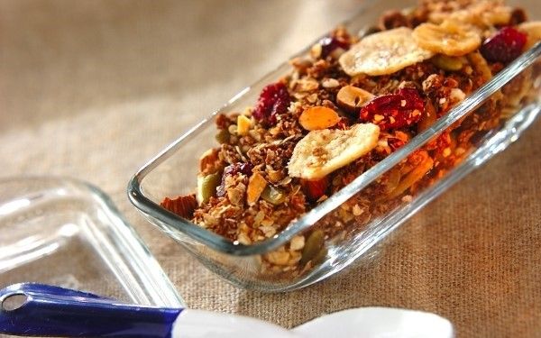 オートミールにナッツやドライフルーツなどを加える、自家製グラノーラのレシピです。ワンボウルで手軽に作れます。完成したものはガラス瓶などに入れて保存しましょう。作り置きしておけば、朝食やお菓子作りに便利です。