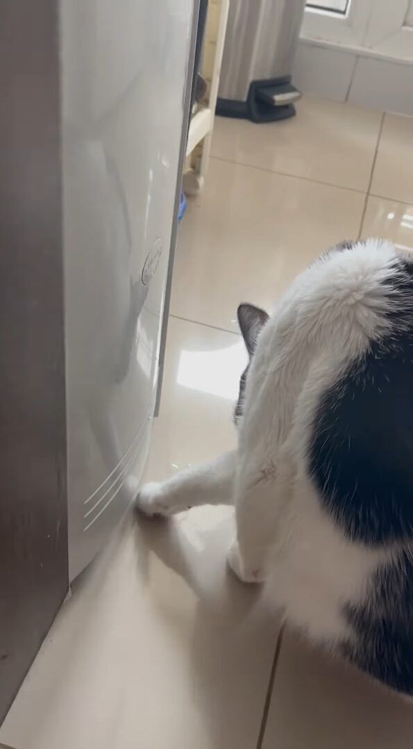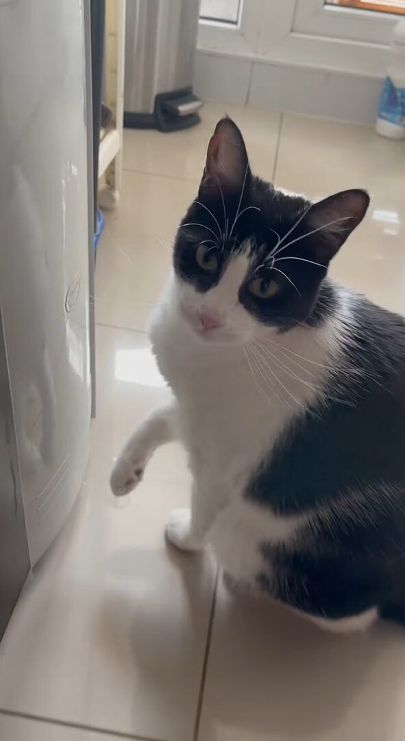 そこには、スクッと2本足で立ち上がった猫の姿があるのですが・・・、なんとウォーターサーバーから直接水を飲んでいるではないですか!!