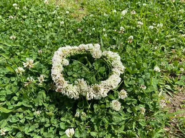 たくさん咲いているシロツメクサを見て、思わず童心に帰ってしまいました。 お花の冠♪
