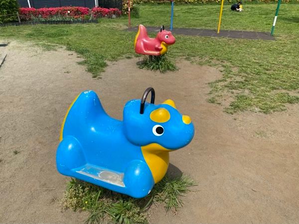 そして、恐竜さんの遊具。どちらも色が映えてかわいいですね。娘もお気に入り!