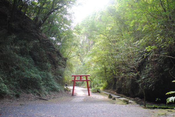 洞穴の入り口には赤い鳥居が佇んでいました。