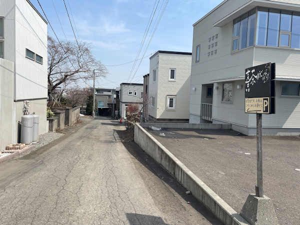 看板のある小径を下っていくと、7-8台くらいは駐車できるスペースが拡がります。