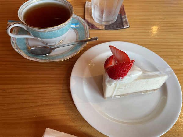 ケーキはレアチーズケーキ、ドリンクはアールグレイ。ケーキも紅茶も美味しく、満足のいく時間を過ごすことができました。