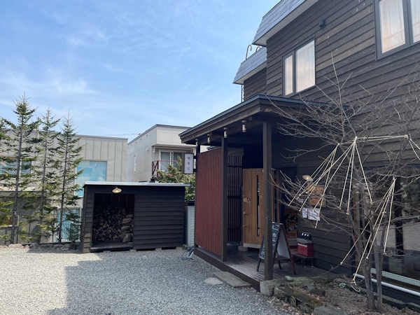喫茶店自体は木造家屋です。二階はこのお店を営んでいるご夫婦家族の住居になっています。 13年前、奥様のご祖父母のお家を改築して「喜茶 ゆうご」さんを開店。お庭の木々もそのまま活かされています。また、隣には薪小屋が建っています。