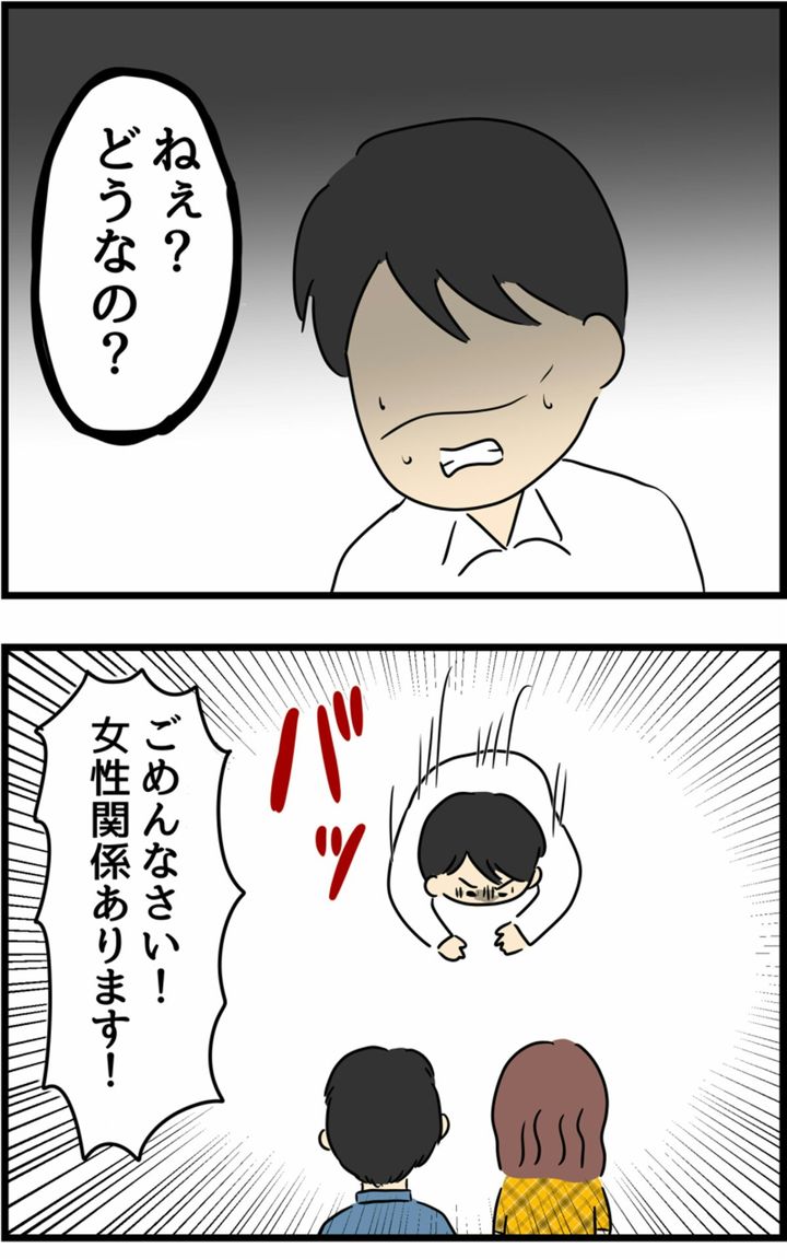 夫の不倫相手の名前を出したところ、夫はすぐに女性関係があることを認めました。不倫を指摘されて真っ青な顔です。ですが、今までリナさんが裏切られていたことを思うと、かわいそうと思えないのは当然ですよね。
