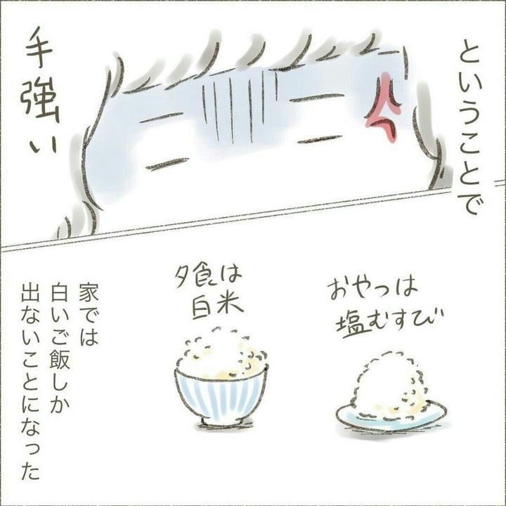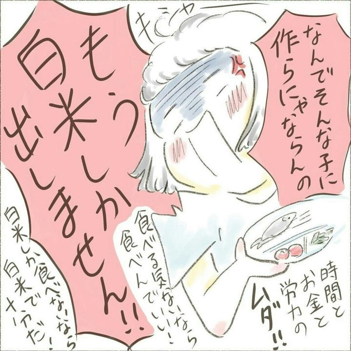 座ってご飯を食べないけーくんの様子に、せせらぎさんはついに我慢の限界を迎えます。そこでけーくんに対し、食事を白米だけにする「白米の刑」を言い渡すのですが…?
