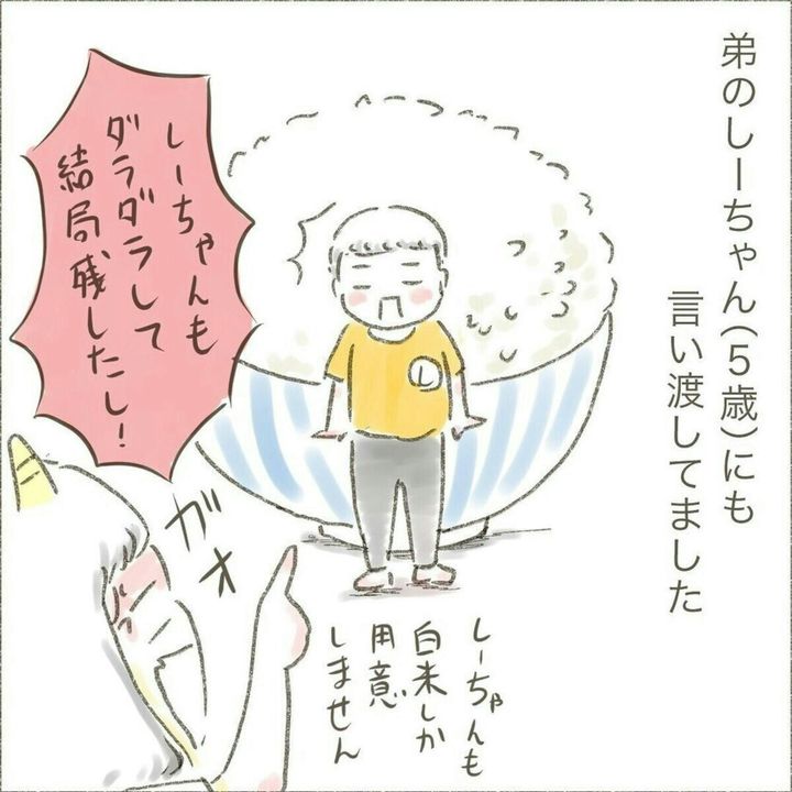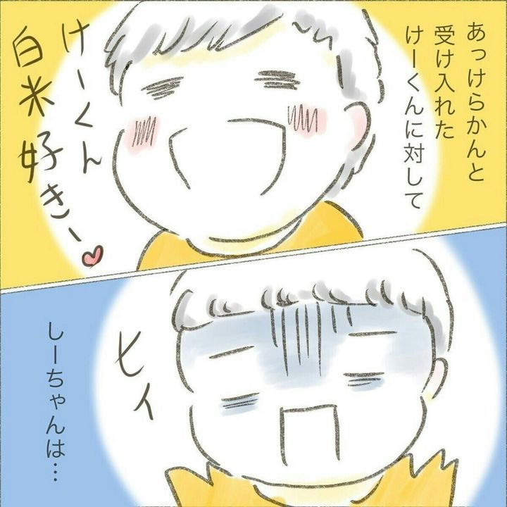 長男・けーくんとともに、次男・しーちゃんも受けていた「白米の刑」。けーくんとは対照的に、しーちゃんはとても大きなダメージを受けたようです。