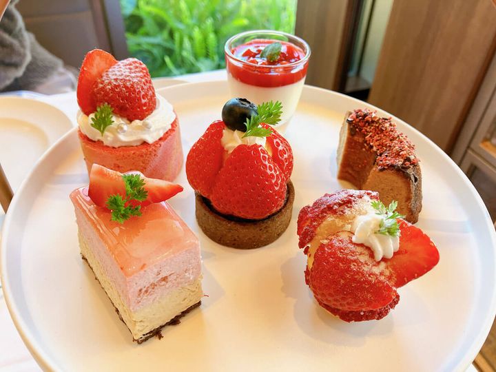 スイーツは全部で6種類。みずみずしいいちごをそのままトッピングしたものや、ソースやフリーズドライにしたものetc.さまざまな形でいちごをたっぷりと堪能できるメニューがそろっています。