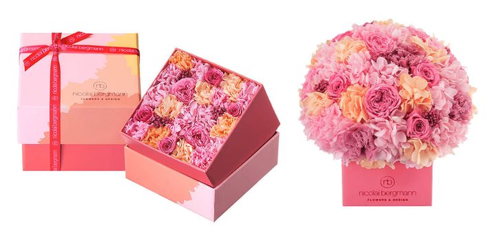 左・フレッシュフラワーボックス S ¥5,060、右・フレッシュフラワーキューブアレンジメント S ¥10,340/ニコライ バーグマン フラワーズ & デザイン