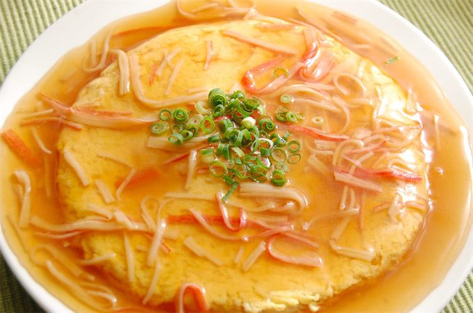 おお~、おいしい!ふわふわで、スッとなくなる口溶けのいいカニ玉。この餡が、なんともいい味♡ゴマ油の風味がふわっと香る、中華風のほんのり甘い餡です。餡にはカニかまの旨味も加わってイイ感じ。ご飯がめちゃめちゃ進みます。かっちゃんさん曰く、ご飯の上にのせて天津飯にしてもいいとのことです。