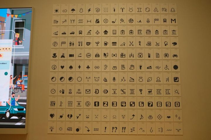 その隣には今やEMOJIとして世界的に普及している絵文字の、ドコモによる初代デザインがパネルで並んでいます。パネルにはひとつひとつ説明が書かれているのでぜひ読んでみてください。