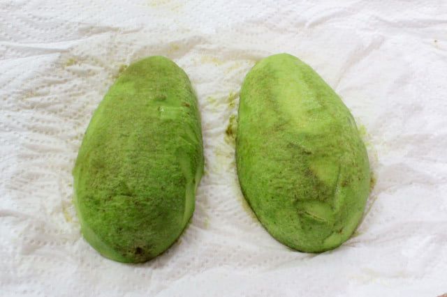 アボカドの上からキッチンペーパーとラップをかけ、やさしく丸めてひとまとめにします。