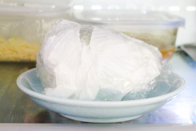 後は冷蔵庫に入れて3時間以上漬けるだけです。今回は動画同様に6時間漬けることにします。