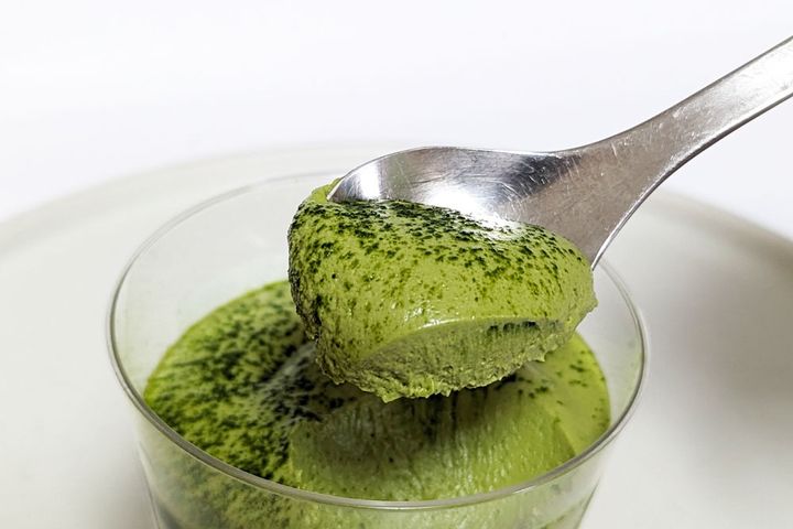 スイーツは一番下が抹茶わらび餅、その上に抹茶マスカルポーネクリーム、そして抹茶パウダーがトッピングされています。