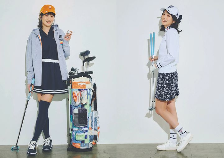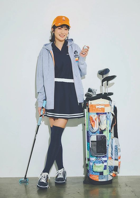パーカ¥26,409、ワンピース¥36,300、キャップ¥12,100、シューズ¥22,800、キャディバッグ¥93,500/以上ホーンガーメント(キューブ) ソックス¥5,390/ランバンスポール(デサントジャパン)