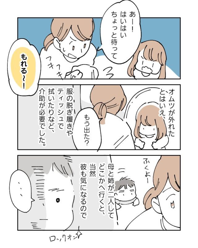 オムツが外れたとはいえ、服の脱ぎ履きやティッシュで拭いたりなど、介助が必要でした。